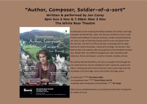 This acclaimed  play about Ivor Gurney’s tragic life is written  and performed by Jan Carey with an introduction from Sir Anthony Seldon